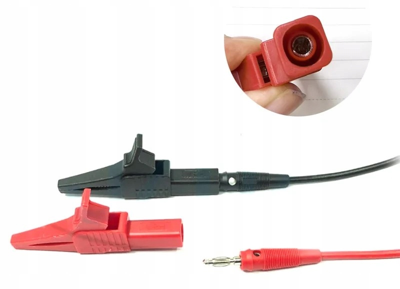 Złącze krokodylek o szerokim zastosowaniu. W kolorze czarnym I czerwonym.