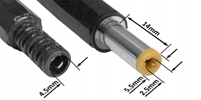 - Złącze: wtyk DC 2.5/5.5/14mm (męski)