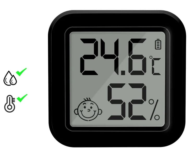 Wewnętrzna, elektroniczna stacja pogody z wbudowanym czujnikiem temperatury oraz higrometrem - niezwykle przydatna w każdym domu, szczególnie w pokoju dziecka, gdzie kluczowej jest utrzymanie odpowiedniej temperatury oraz wilgotności powietrza.