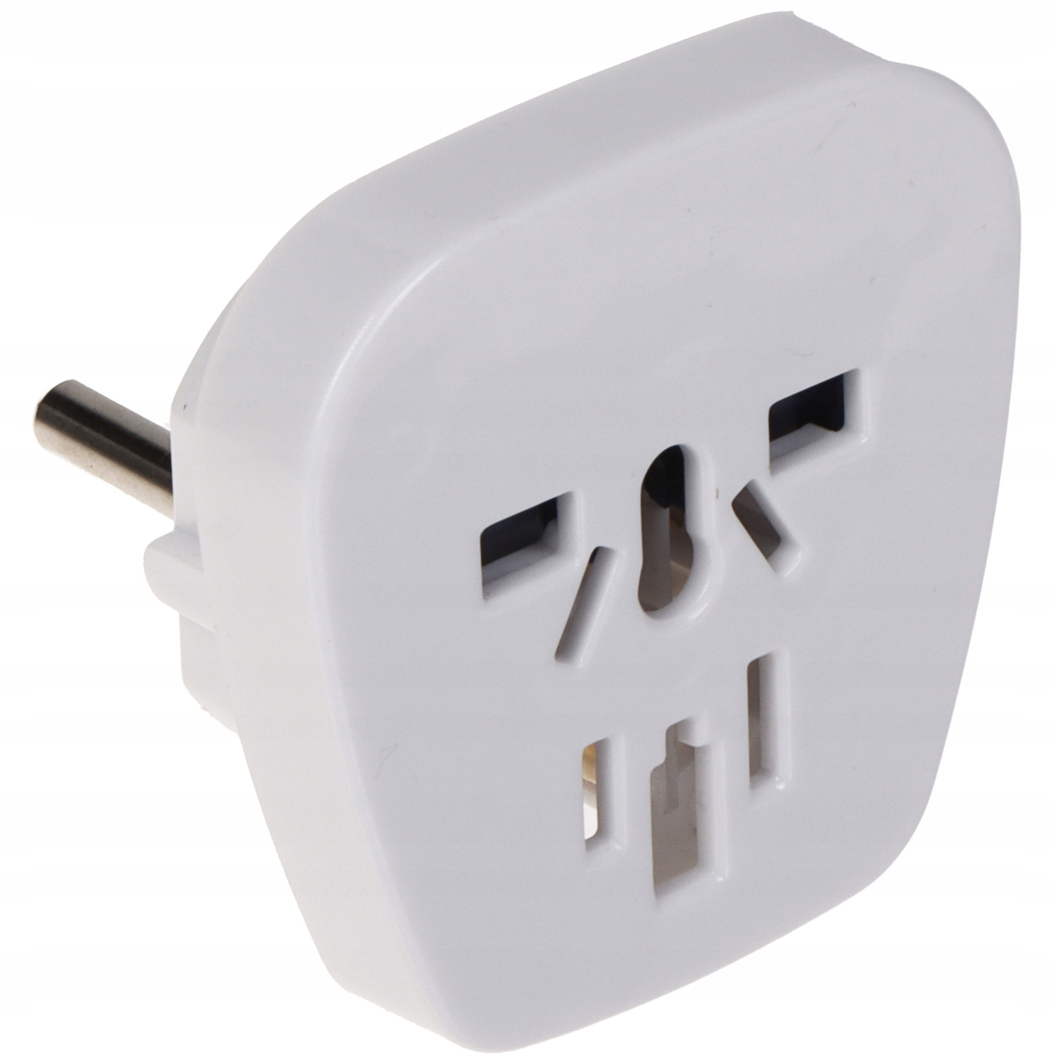 Adaptor Przejście AC/AC wtyk polski/gniazdo uniwersalne białe do sprzętu z różnych krajów świata (tzw. bezpieczne uniwersalne gniazdo z blokadą)