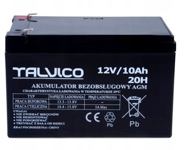 - Nominalna pojemność: 10Ah przy 20h rozładowania