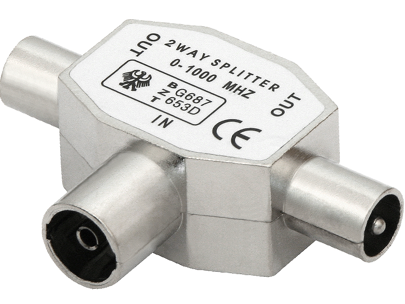 Antena – splitter TV 2-way gniazdo na 2 wtyki, rozdzielacz sygnału 0–1000 MHz