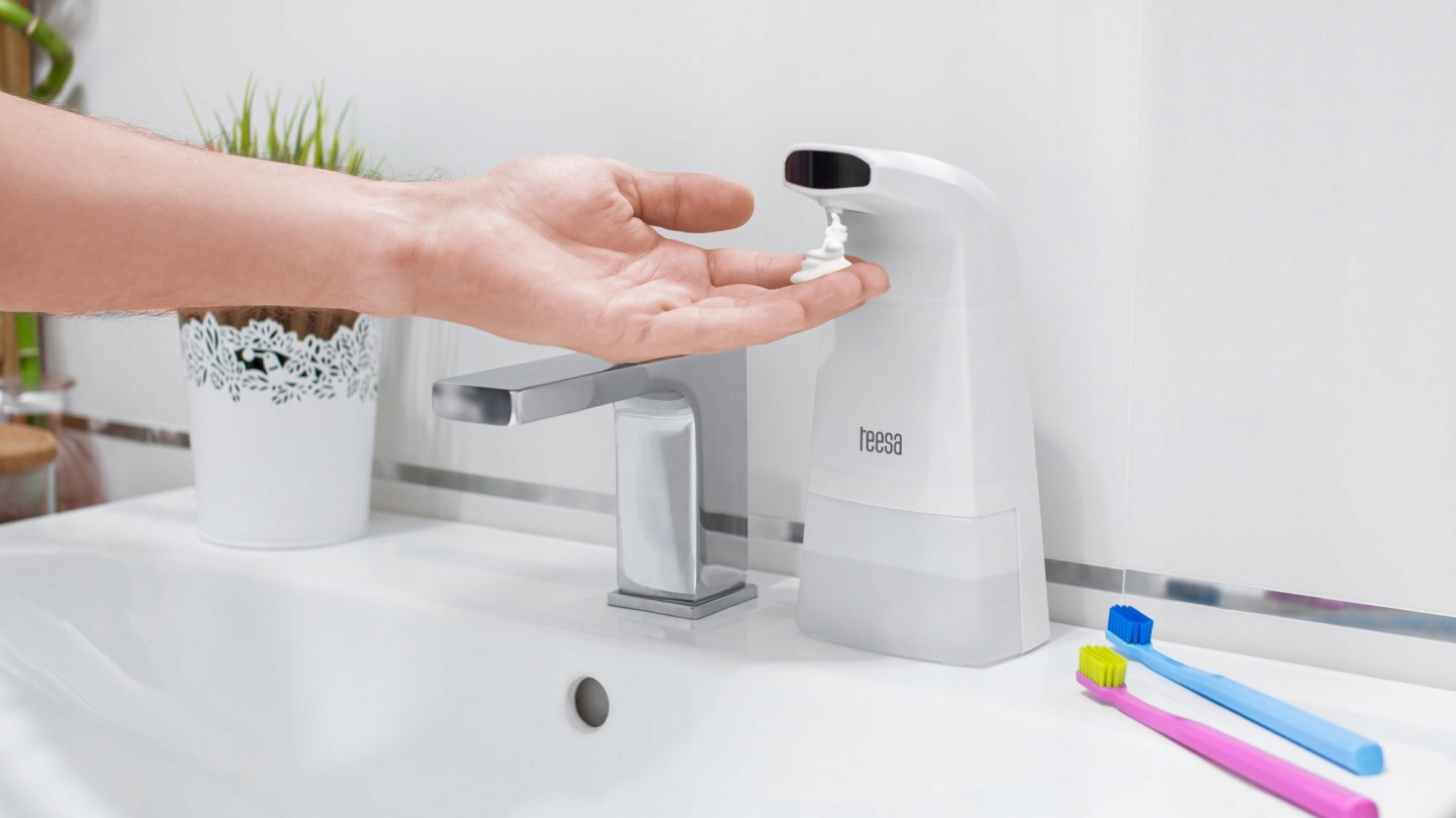 Automatyczny dozownik do mydła został wyposażony w czujnik ruchu, oznacza to, że wystarczy zbliżyć dłonie pod podajnik, aby dawka piany została zaaplikowana. Dozownik do mydła marki Teesa posiada zbiornik o dużej pojemności 310 ml, dlatego nie musisz martwić się o jego często uzupełnianie.
