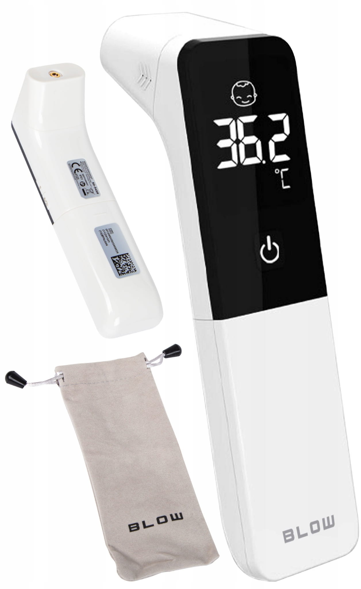 - Pomiar temperatury na czole, w ucho oraz temperatury otoczenia i przedmiotów (np. mleka w butelce)