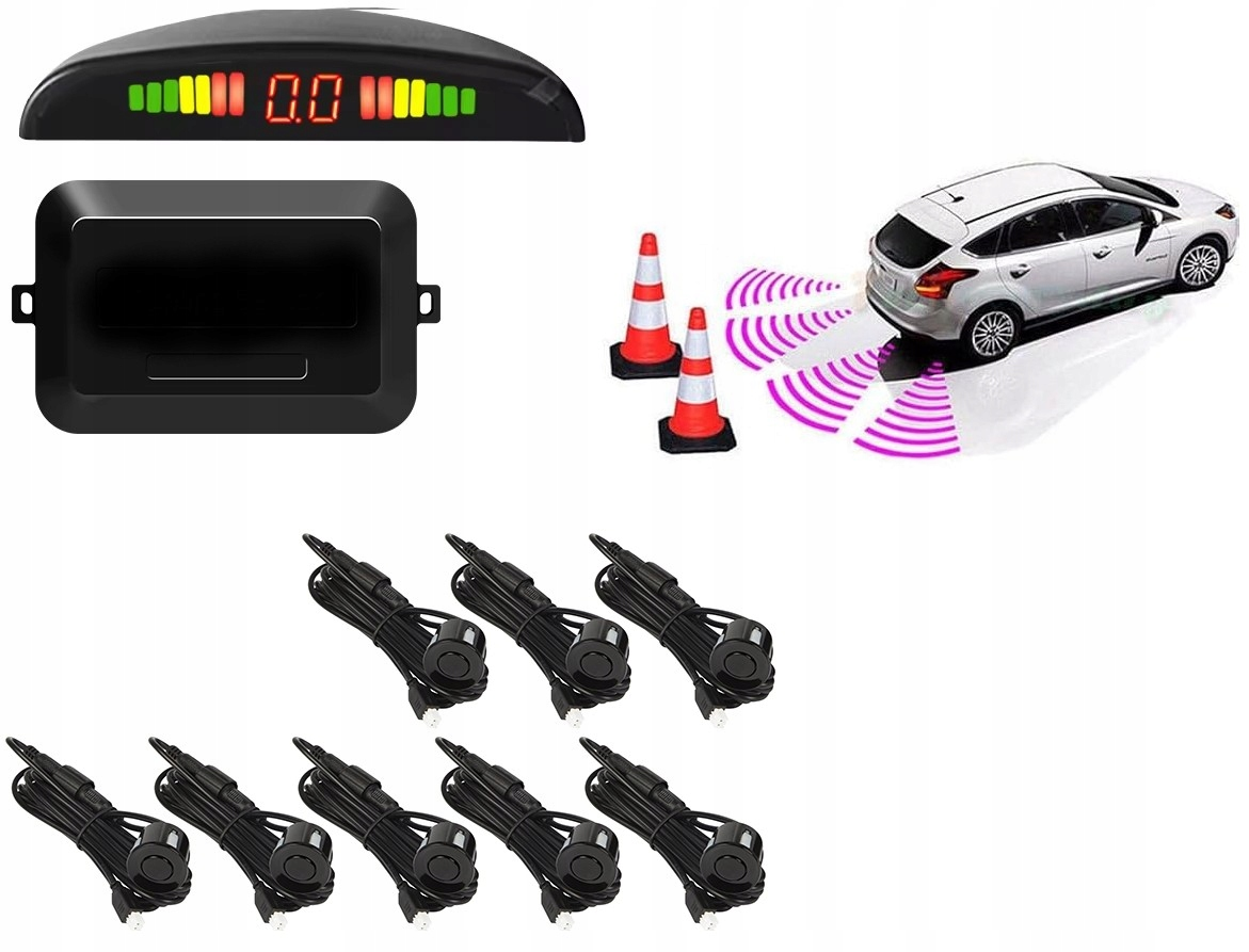 Czujnik cofania czarny 22mm 8 czujników parkowania Wyświetlacz LED Buzzer