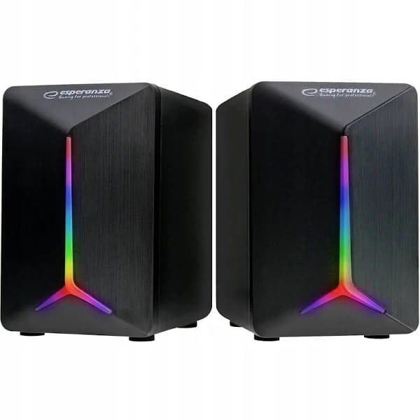 - Wysokiej jakości stereofoniczne głośniki USB z podświetleniem LED RAINBOW.
