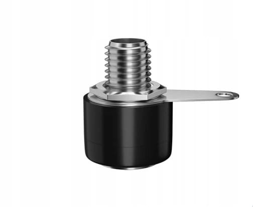 Montażowe gniazdo bananowe w kolorze czarnym ze srebrnymi końcówkami