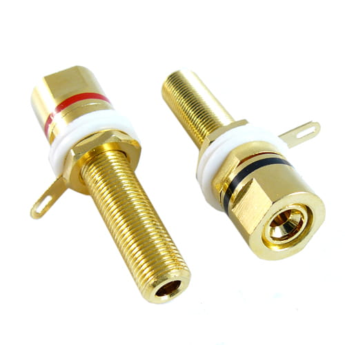 Gniazdo bananowe montażowe pozłacane 4 mm czerwone + czarne, wysoka jakość audio