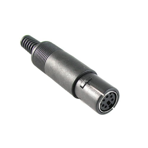 Gniazdo miniDIN 6-pinowe na kabel - złącze żeńskie miniDIN to zminiaturyzowana wersja złącza DIN - wielopinowego złącza znajdującego zastosowanie w elektronice jako element sprzętu audio, video oraz w informatyce.