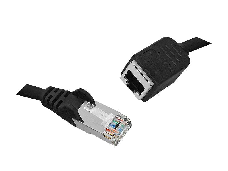 Kabel przeznaczony do połączeń sieciowych kategorii 5e, 8p8c, zakończony gniazdem i wtykiem RJ45.