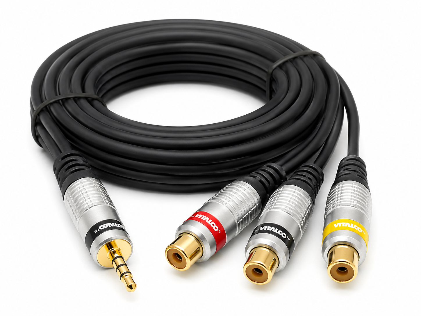 - Złącza: wtyk Jack 0,12m TRRS 4P męski, 3x gniazdo RCA/CINCH (żeński)