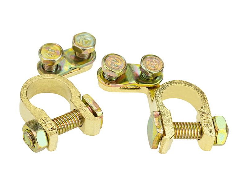 Wykonane z wysokiej jakości stopu aluminium dobrze przewodzącego prąd. Przeznaczone do akumulatorów o napięciu nawet do 24V. Klemy regulowane są za pomocą mocnych śrub.