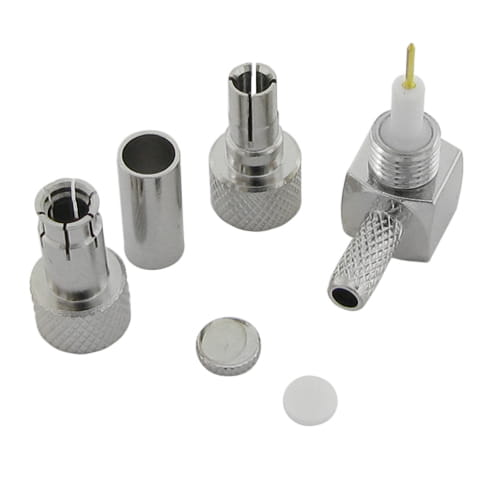 Złącze męskie CRC9/TS9 na przewód RG174 z wymiennymi końcówkami, kątowe