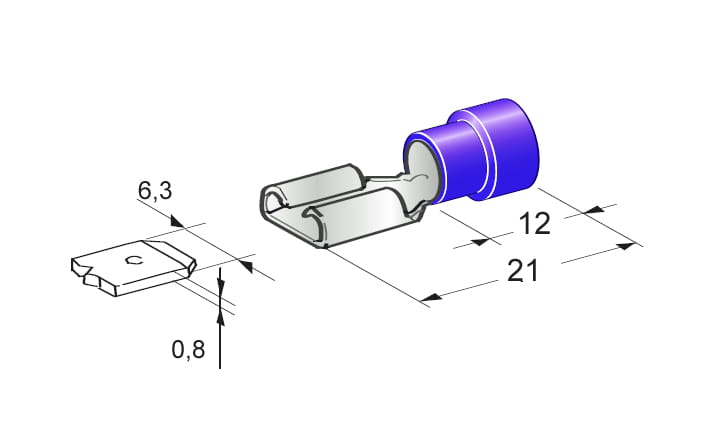 Konektor żeński 55000 6.3mm izolowany niebieski przekrój przewodu 1.5 - 2.5 mm2