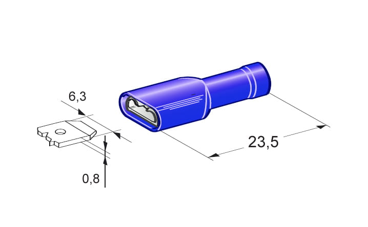 Konektor żeński 55500 6.3mm izolowany (cały) niebieski przekrój przewodu 1.5 - 2.5 mm2