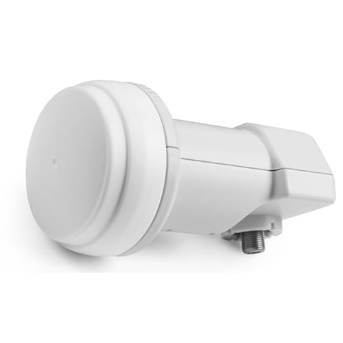 Bardzo tani i lekki, pojedynczy konwerter Universal firmy Opticum LSP-02G do anten offsetowych ze współczynnikiem szumów 0,1dB (dane z naklejki). Biały kolor obudowy o niewielkich rozmiarach.