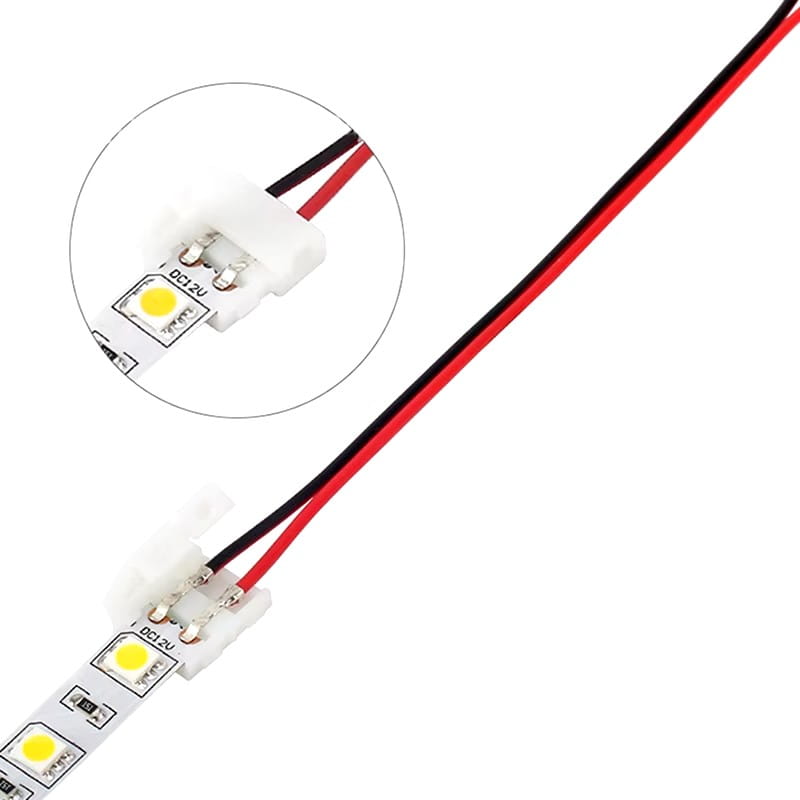 Łącznik do taśmy led z przewodem o długości około 15cm zakończony dwoma złączami dwu pinowymi to taśm jednokolorowych.