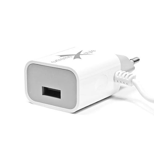 Uniwersalna ładowarka sieciowa marki eXtreme Ampere. Ładowarka posiada uniwersalne gniazdo USB oraz wbudowany kabel micro USB z ogólnym natężeniem prądu 2,4 A. Ładowarka jest kompatybilna z każdym urządzeniem ładowanym przez odpowiedni kabel USB lub kabel micro USB.