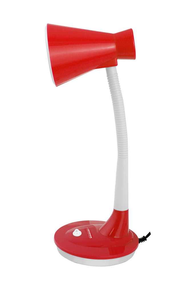 Lampka biurkowa z dużą, stabilną podstawką. Elastyczne ramię umożliwia ustawienie lampki pod dowolnym kątem. W lampce można instalować żarówki LED z gwintem E27 i mocą do 12W.