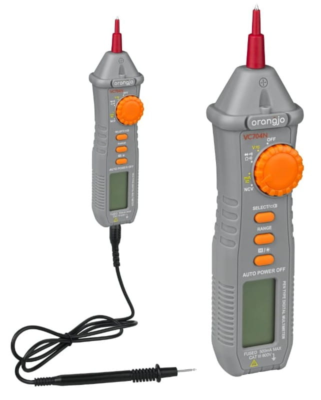 - Miernik cyfrowy ORANGJO z automatycznym i ręcznym wyborem zakresu pomiarowego.