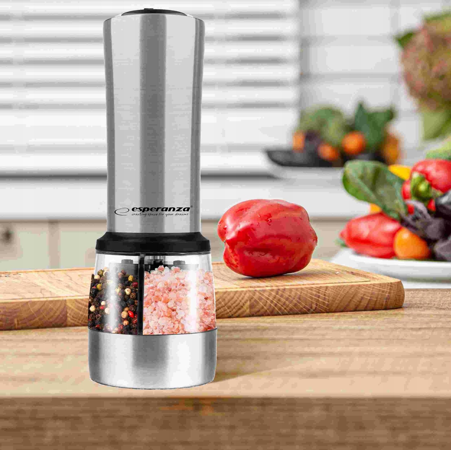 - Łatwy w użyciu system mielenia 2 w 1: osobny przycisk do soli i osobny do pieprzu