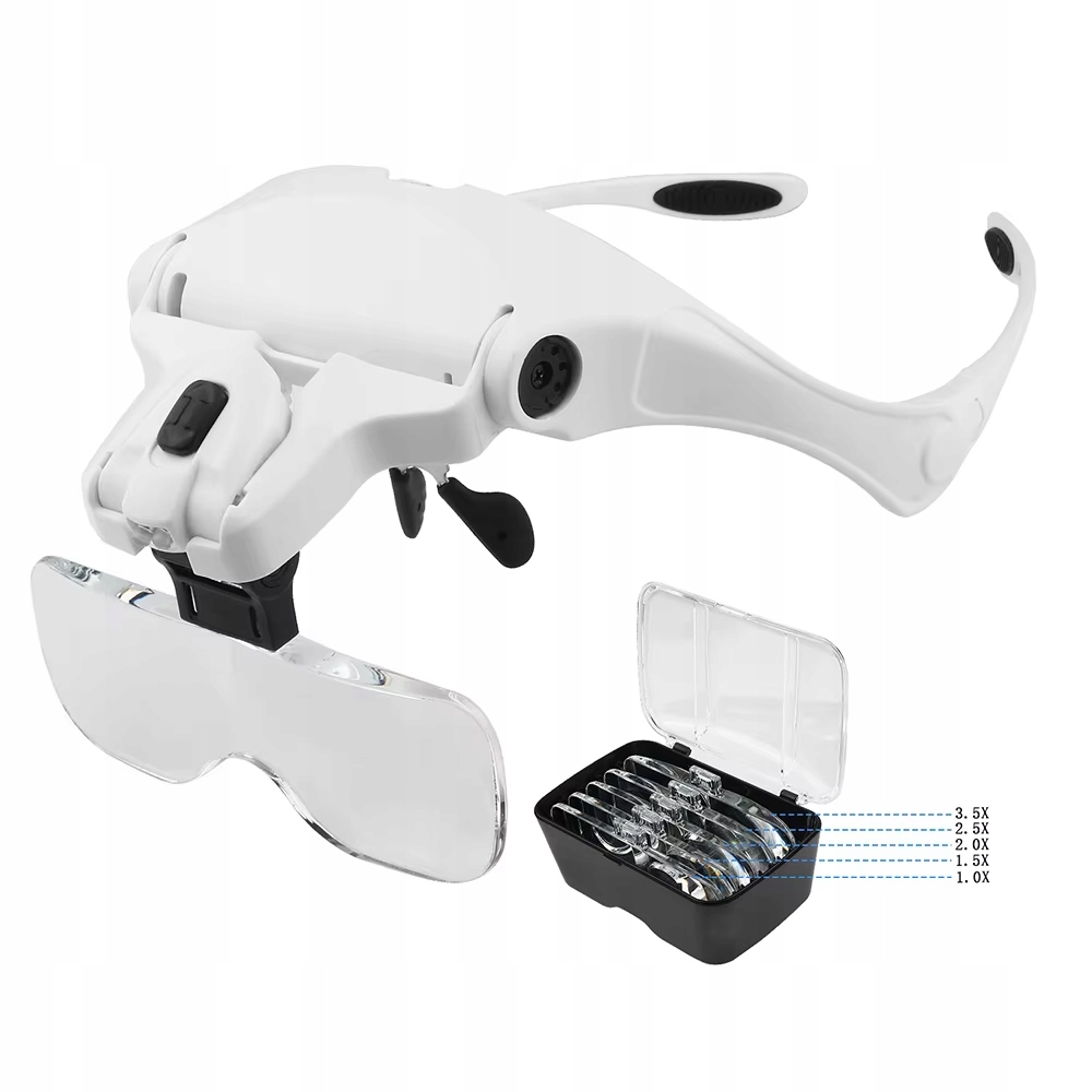 Okulary lupa powiększające z podświetleniem LED i soczewki wymienne zestaw
