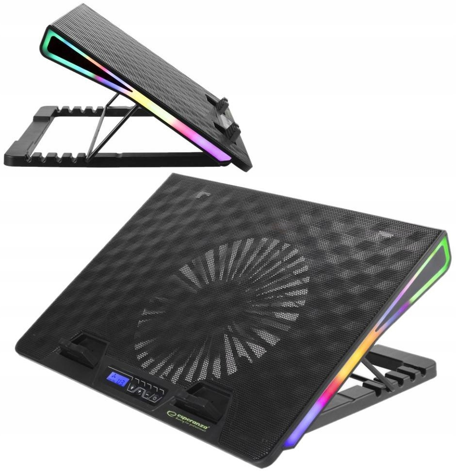 Cienka, nowoczesna i stylowa, podświetlana LED RGB, podstawka chłodząca pod notebooka.