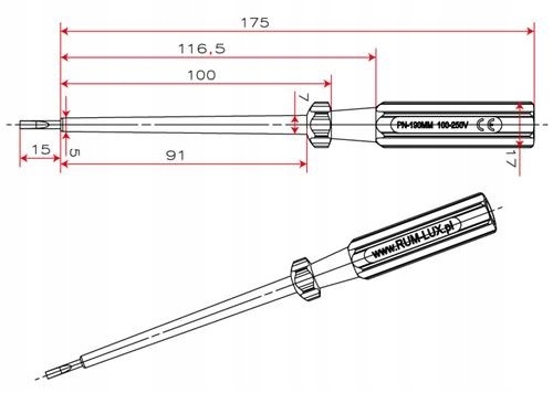 Próbnik wskaźnik napięcia neonówka pn-190mm 230v
