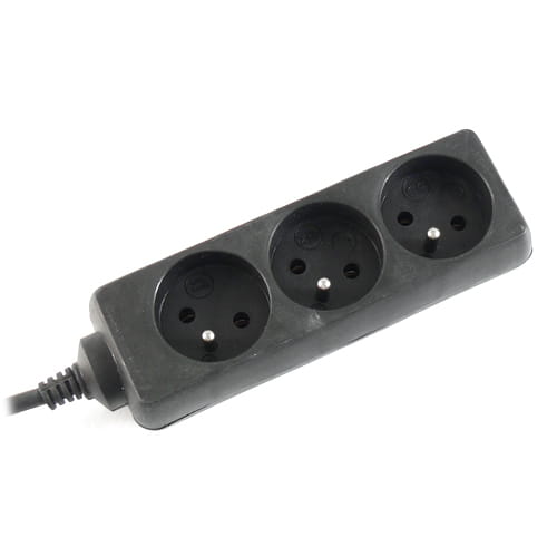 Czarny przedłużacz 3 gniazdowy z uziemieniem o długości 2 m.
