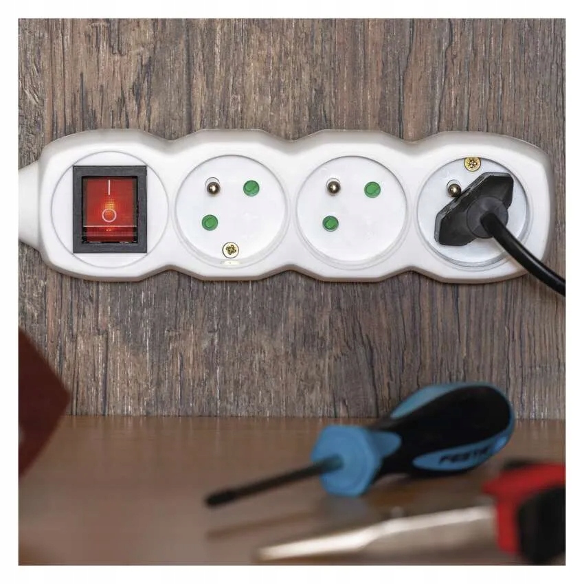 Przedłużacz - 3 gniazda z wyłącznikiem 2m