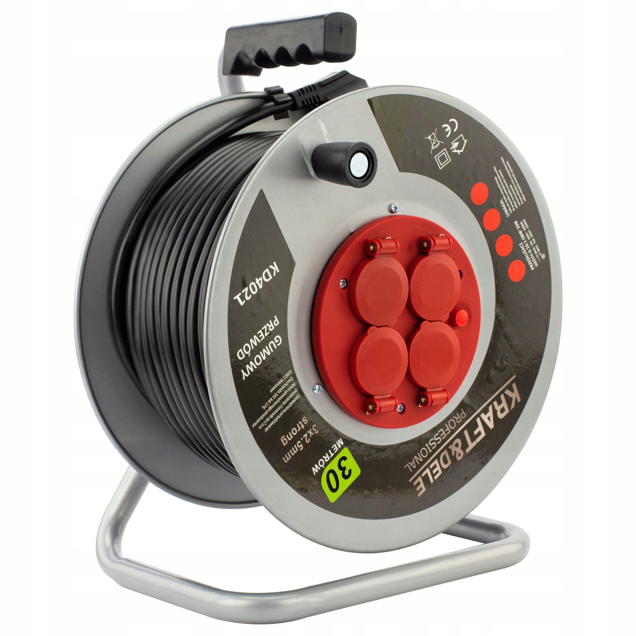 Przedłużacz bębnowy metalowy bęben 4 gniazda 3x2,5mm² 16A 3500W 30m