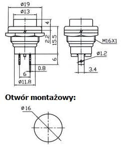 Przełącznik okrągły duży metal PBS-26B czerwony