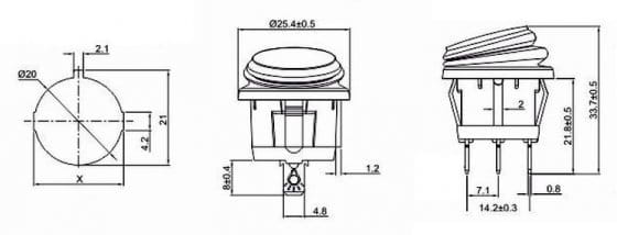 - Przełącznik klawiszowy wodoodporny 3-pin 2-poz. ON-OFF