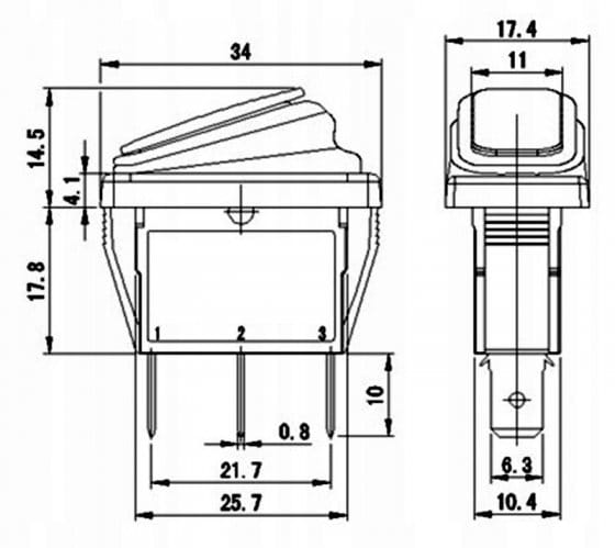 - Przełącznik klawiszowy wodoodporny 3-pin 2-poz ON-OFF;