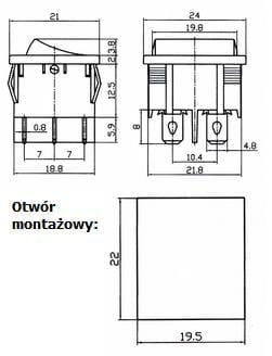 Przełącznik kołyskowy (MXL 201A) 6pin 2poz