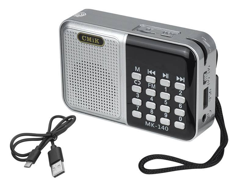 Mk-140 to nie tylko radio, ale również kieszonkowy odtwarzacz muzyczny. Urządzenie zostało wyposażone w port USB i gniazdo kart pamięci. Jeśli nie chcesz słuchać radia FM, możesz odtwarzać swoje ulubione piosenki za pomocą pendriva lub karty microSD. Wbudowane gniazdo AUX pozwala na podłączenie słuchawek i korzystanie z radia w sposób dyskretny, np. w miejscach publicznych. Ładowanie urządzenia odbywa się za pomocą dołączonego do zestawu kabla micro USB.