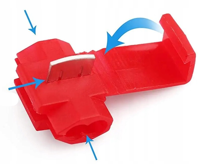 Połączenie następuje poprzez zamknięcie zatrzasku, specjalna blaszka nacinając lekko izolację łączy ze sobą dwa przewody.