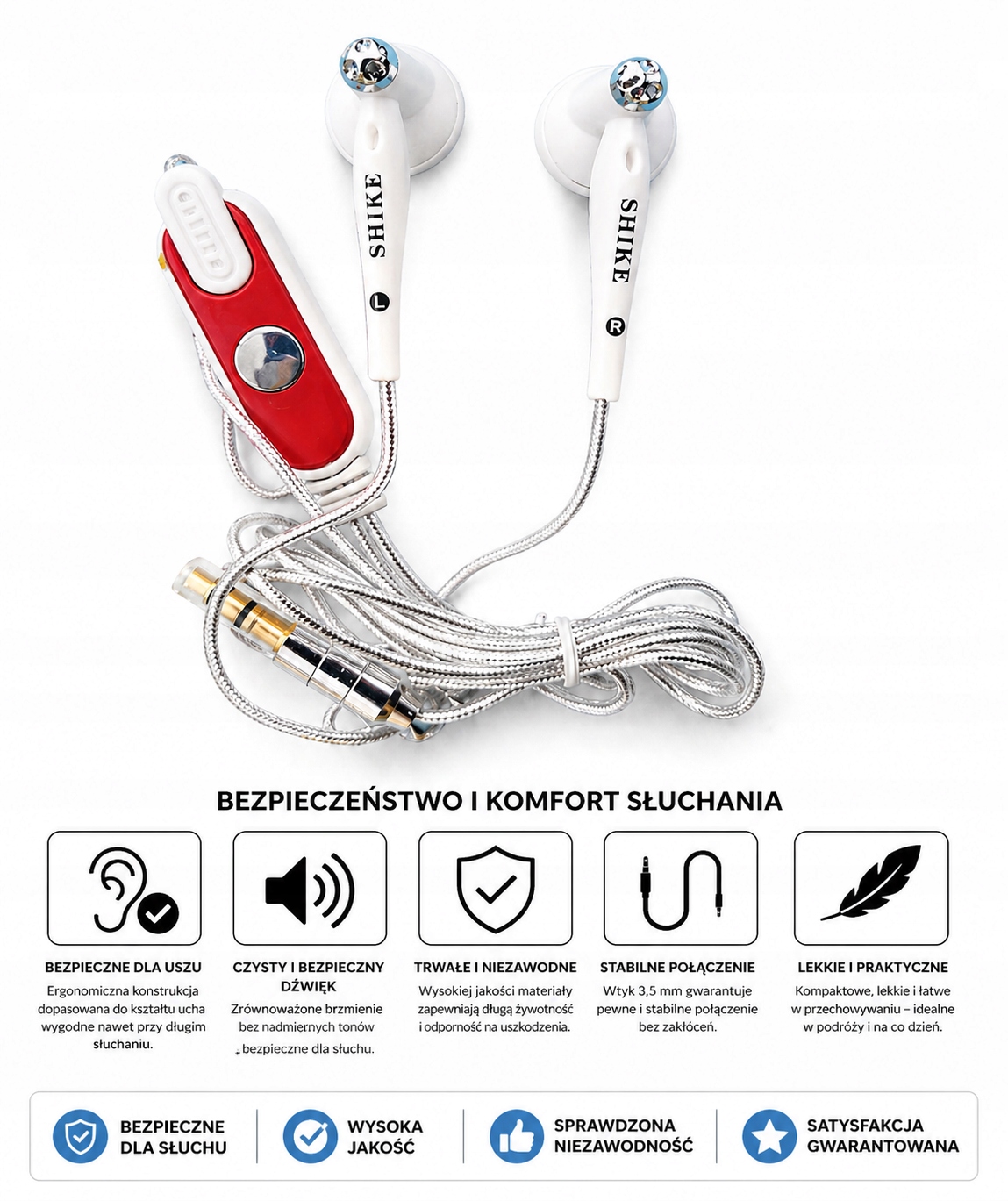 Dzięki dopracowanej konstrukcji słuchawki są lekkie, dobrze dopasowują się do ucha i zapewniają komfort nawet podczas dłuższego słuchania. Oferują czysty, wyraźny dźwięk, który sprawdzi się zarówno przy muzyce, jak i podczas oglądania filmów czy rozmów.