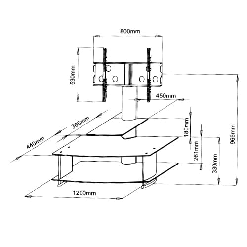 Stolik RTV z uchwytem do TV 30–50” S-01, regulowany, szkło hartowane, VESA