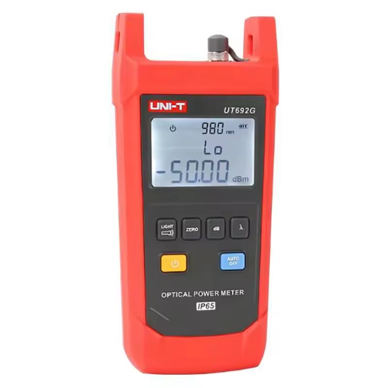 Ręczny tester energii optycznej UT692G służy do pomiaru absolutnej energii optycznej lub względnej utraty energii optycznej na długości przewodu światłowodowego.
