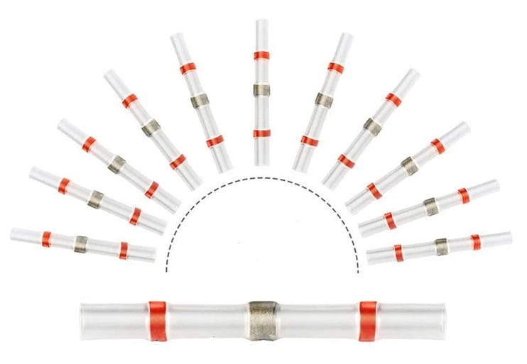 W rurce termokurczliwej znajduje się ring z cyną która po podgrzaniu do ok 150°C topi się i łączy przewody.