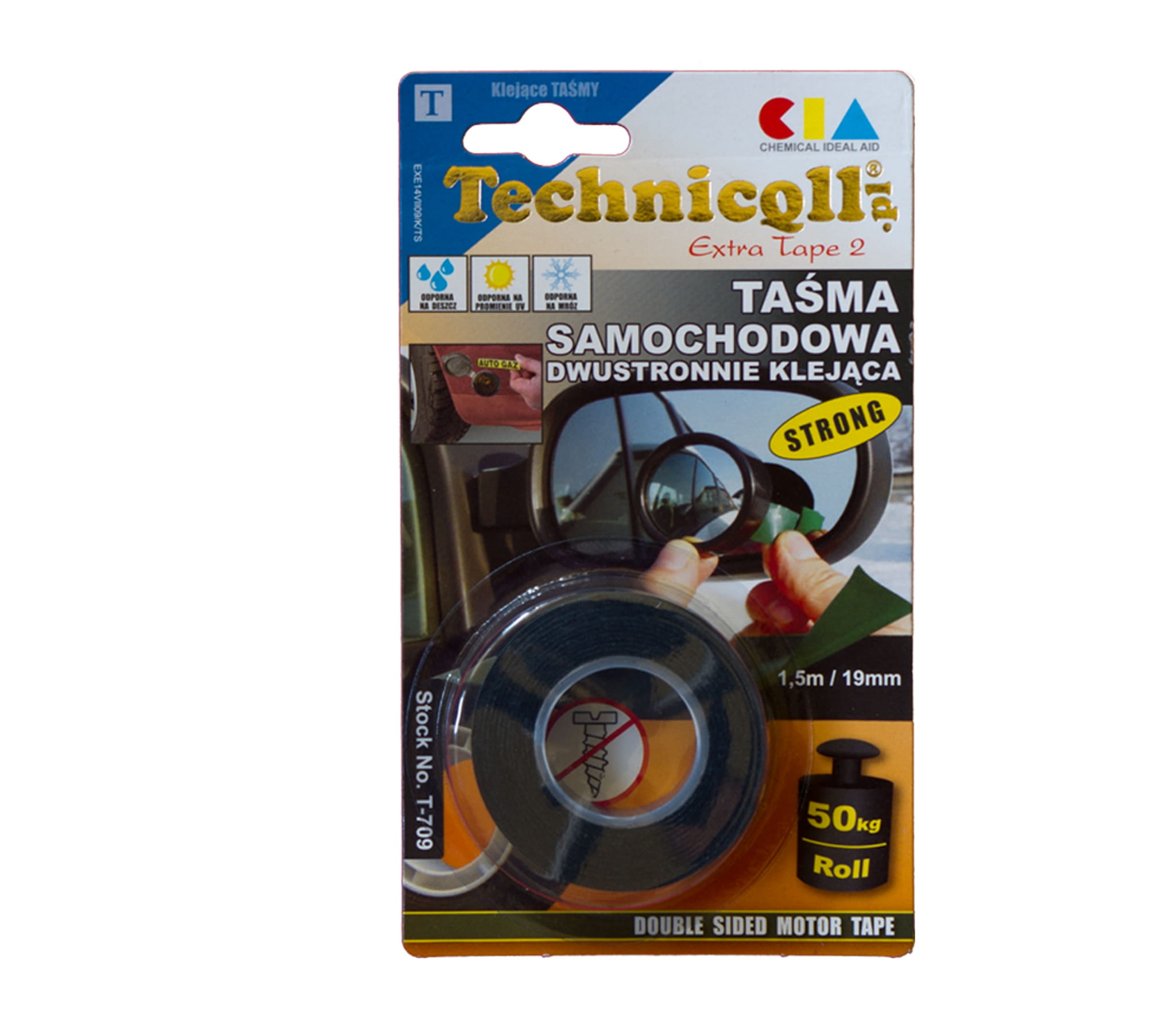 Jest niezastąpiona podczas przyklejania różnych przedmiotów samochodowych np. wykończeniowych listew ozdobnych, emblematów, tabliczek, znaków. Nieodzowna w mocowaniu różnego rodzaju uchwytów np. na telefon, notes, termometr, a także innych akcesoriów samochodowych np. lusterka martwego pola, dodatkowego światła stopu czy anteny.