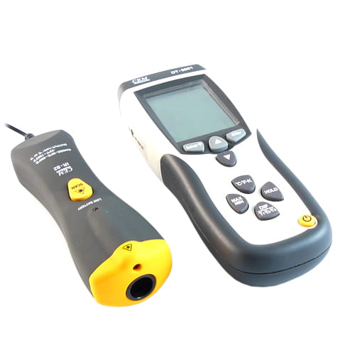CEM DT-8891 to miernik temperatury z możliwością podłączenia dwóch sond typu K i dodatkowej przystawki do pirometrycznego pomiaru temperatury.