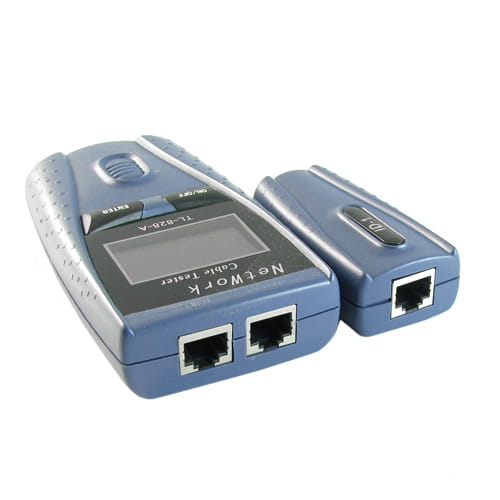 Tester kabli sieciowych RJ45 z LCD model TL-828-A pozwala na testowanie prawidłowej pracy kabla sieciowego RJ45 UTP / FTP. Dzięki oddzieleniu nadajnika i odbiornika możliwe jest testowanie kabla już zainstalowanego w budynku. Natomiast dzięki dwóm gniazdom RJ45 w nadajniku, możliwe jest testowanie kabli tylko przy pomocy nadajnika. Elementem wyróżniającym ten tester jest duży i czytelny wyświetlacz LCD (4 wiersze po 16 znaków), dzięki któremu wizualizacja wyników testowania jest bardzo prosta i czytelna.