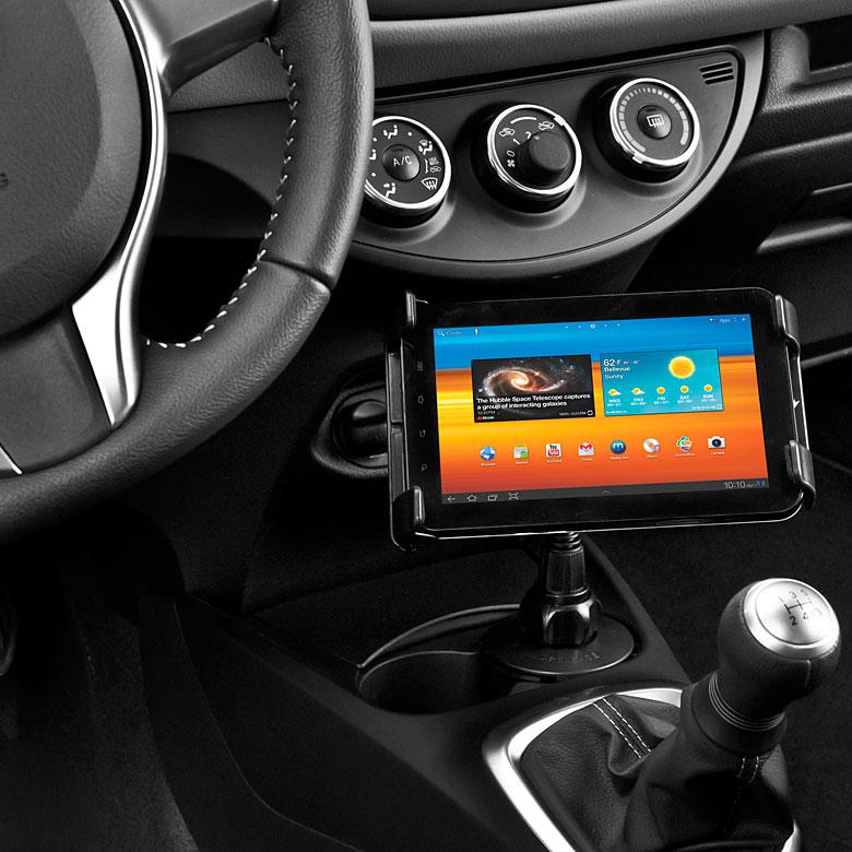 Zastosowanie mocowania w uchwycie na kubek oraz krótkiego i elastycznego ramienia pozwala na dostosowanie pozycji tabletu do indywidualnych wymagań. Solidna głowica oraz szeroki rozstaw ramion pozwala na zamontowanie praktycznie każdego tabletu dostępnego na rynku.