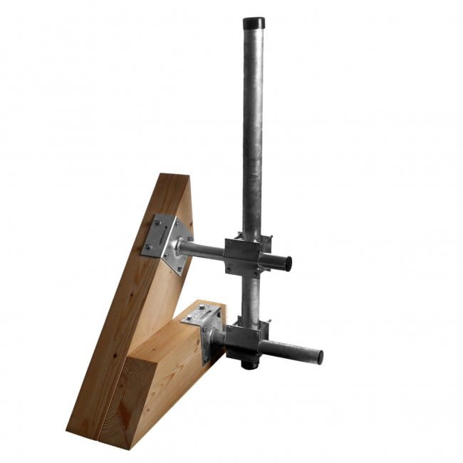 Do odcinków rury przytwierdza się za pomocą specjalnych mocowań maszt, który dalej przechodzi przez poszycie dachu.