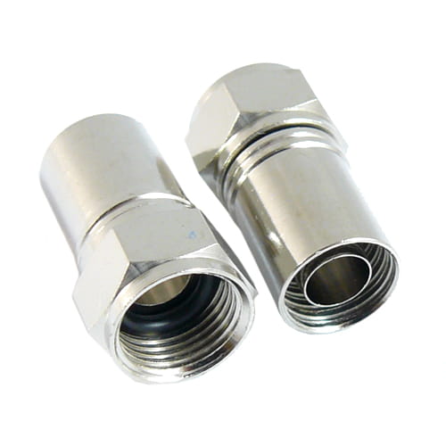 Wtyk F zaciskany na kabel 6.8mm z uszczelką (stożek) - złącze męskie F to współosiowe złącze wykorzystywane do łączenia kabli koncentrycznych o impedancji 75 Ohm w instalacjach telewizji kablowych, modemach kablowych oraz telewizji satelitarnej.