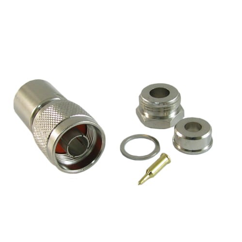 Wtyk N na kabel H155, skręcany - złącze męskie N to złącze współosiowe stosowane do łączenia urządzeń zbudowanych z kabli koncentrycznych przesyłających sygnały o wysokiej częstotliwości (do 18GHz). Znajduje zastosowanie jako złącze antenowe w sieciach bezprzewodowych.