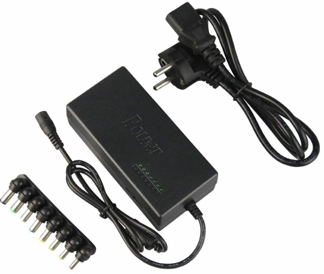Sieciowy zasilacz uniwersalny do laptopów. Dzięki kompletowi 8 wymiennych wtyków i możliwości regulacji napięcia wyjściowego pozwala dostosować zasilacz do konkretnego modelu laptopa.
