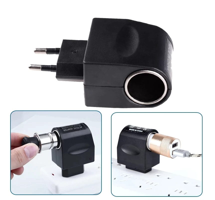 Przejściówka 90-240V AC z wtyczką 12V DC dla ładowarki samochodowej lub wtyczki zapalniczki samochodowej